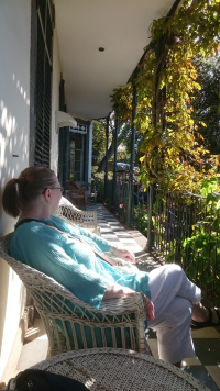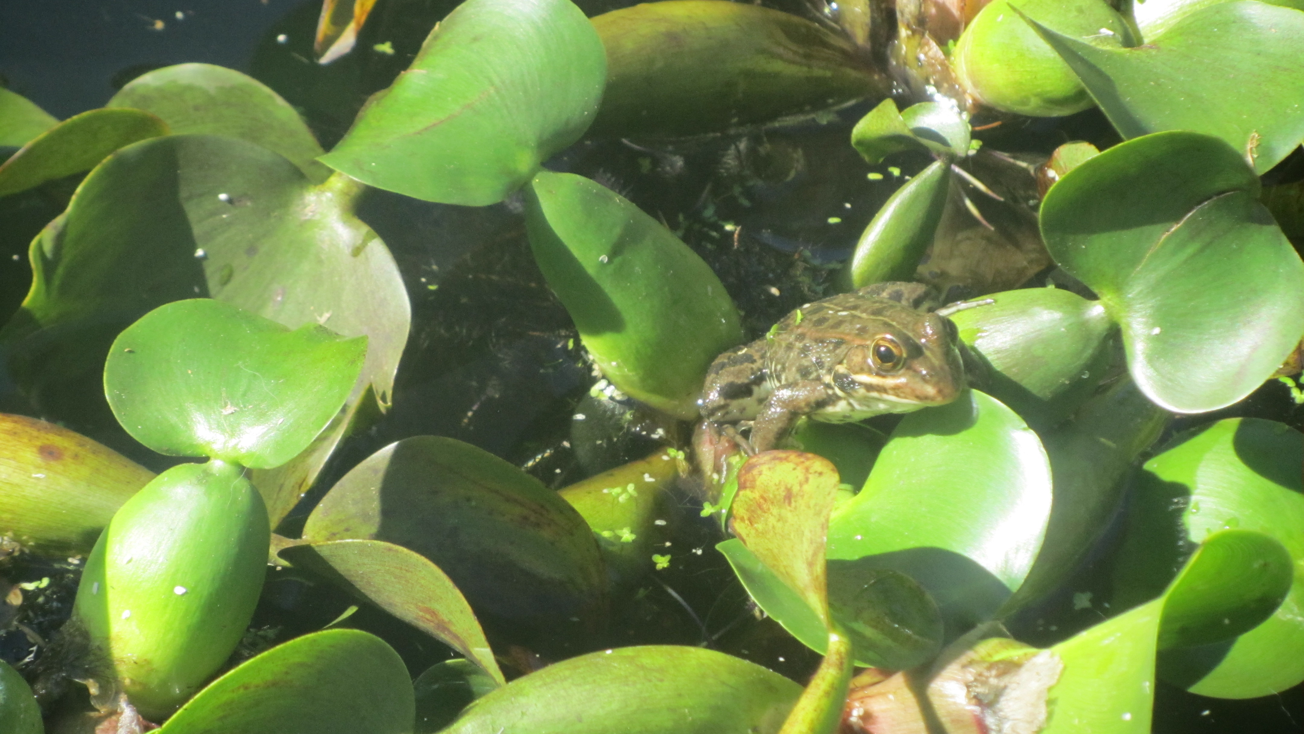 The frogs where keeping a big noise at the bond near the cafeteria terrace in the hot sun.