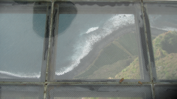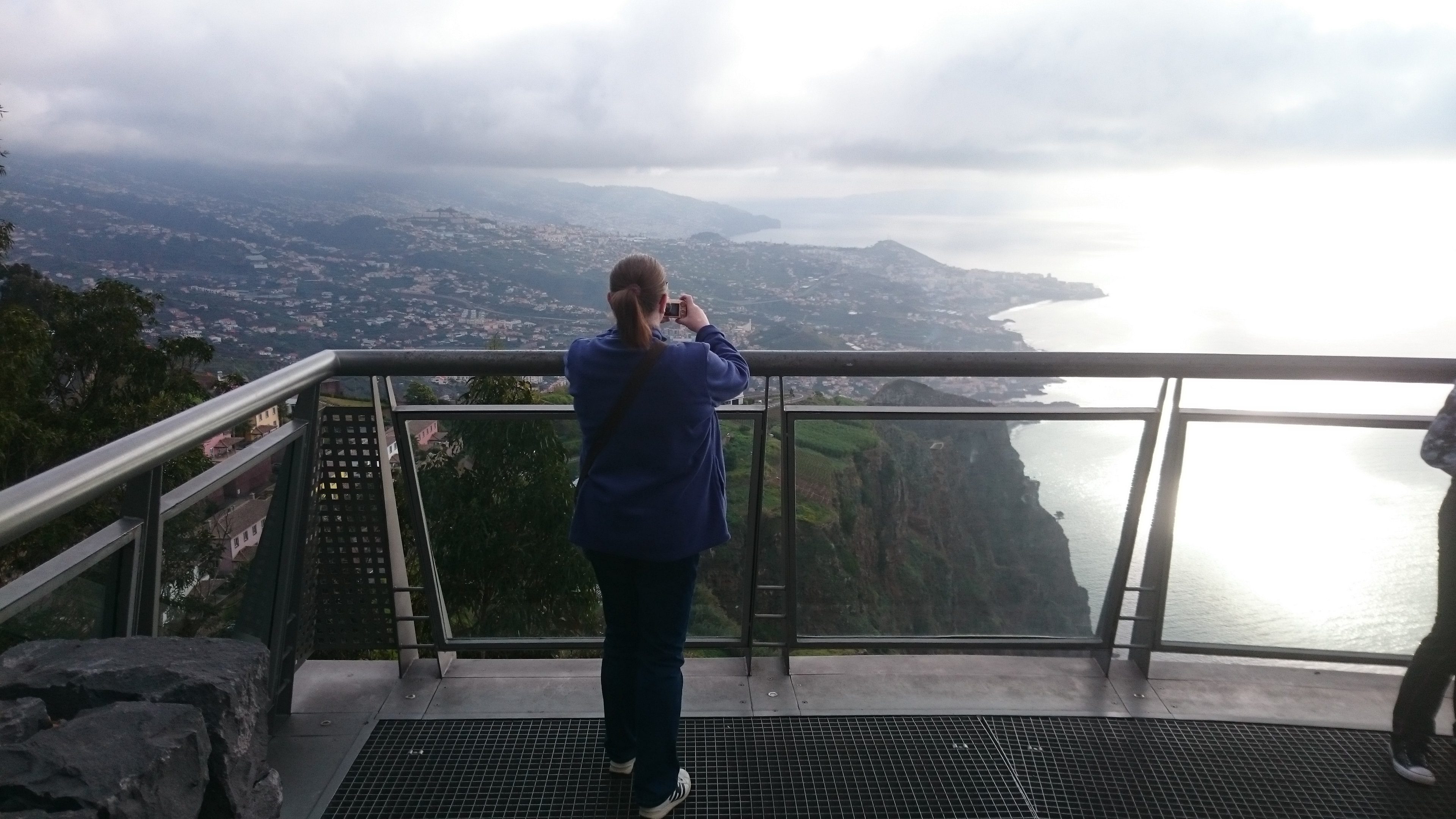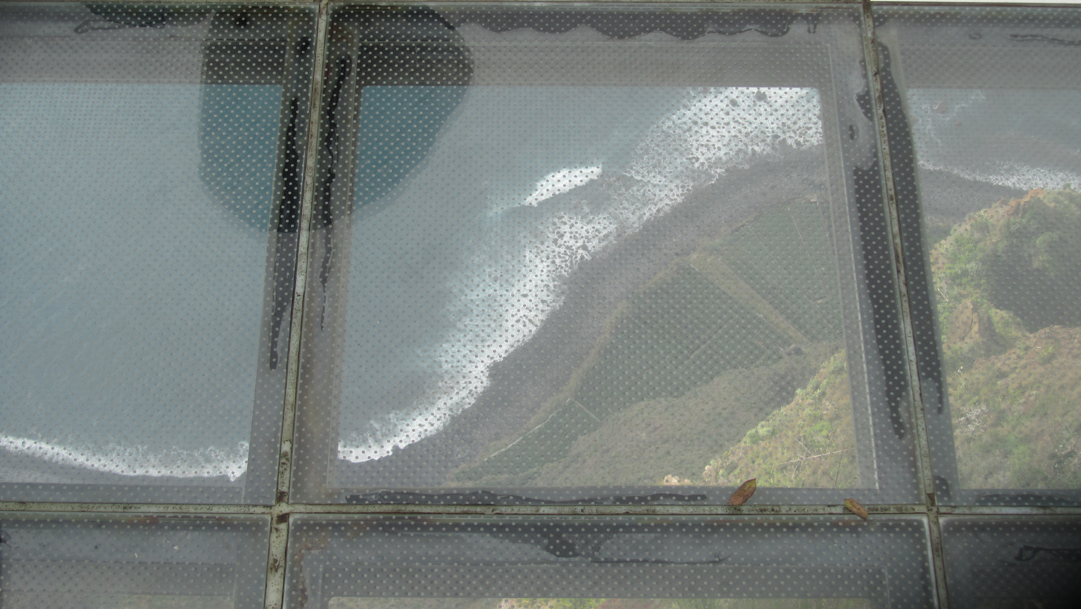 Looking trough the class floor of the Sky WalkRoad to Camara de Lobos