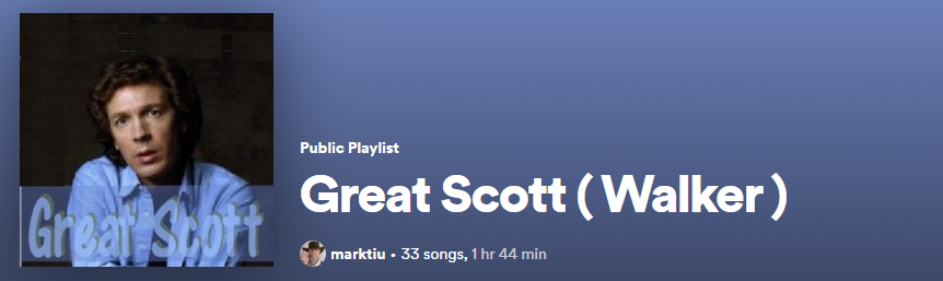 Main Contact Cottage Links Cartoons Novels Family Scott Walker The Walker Brothers decades genres artists Play in Play inYoutube Music START playlist Scott Walker - All my love's laughter - Any Day Now 1973 Albert Hall BBC Prom Walker Bros. 40th Aniversary Great Scott Walker Scott sings Jacques Brel Scott Walker discography Scott Walker - Always Coming Back to You - Scott 1967 Scott Walker - Any day now - Any Day Now 1973 Scott Walker - Black Sheep Boy - Scott 2 1968 Scott Walker - Boy Child - Scott 4 1969 Scott Walker - Copenhagen - Scott 3 1969 Scott Walker - Glory Road - Movie Goer 1972 Scott Walker - I think i`m getting over you - Unreleased Scott Walker - I Trew it All Away - 5 Easy Pieces Scott Walker - Joanna - a single Boy Child 1992 .mp3 Scott Walker - Joe Hill - Movie Goer 1972 Scott Walker - Lights of Cincinatt - It's Raining Today 1996 Scott Walker - Mathilde - Scott 1967 Scott Walker - Montague Terrace - Scott 1967 Scott Walker - Thanks For Chicago Mr. James - Till he Band comes in 1970 Scott Walker - The Bridge - Scott 2 1968 Scott Walker - The Hills Of Yesterday - Till he Band comes in 1970 Scott Walker - The House Song - We had it all 1974 Scott Walker - The Look of Love - TV Serries 1969 Scott Walker - The World's Strongest Man - Scott 4 1969 Scott Walker - We Had It Al - We had it all 1974 Scott Walker - What Ever Happened To Saturday Night - We had it all 1974 Walker Brothers & Scott Walker - Boulder to Birmingham - No Regrets 1975 Walker Brothers & Scott Walker -The Shadow Of Your Smile - Unreleased Scott Walker - All his children - Movie Goer 1972 Scott Walker - Big Louise - Scott 3 1969 Scott Walker - Come Next Spring - Scott 2 1968 Scott Walker - It's Raining Today - Scott 3 1969 Scott Walker - It_s Over - Till he Band comes in 1970 Scott Walker - No easy way Down - Stretch 1973 Scott Walker - Ride me down easy - We had it all 1974 Scott Walker - The ballad of Sacco and Vanzet - Movie Goer 1972 Scott Walker - The Summer knows - Movie Goer 1972 Scott Walker - Wait Until Dark - Scott 2 1968 Scott Walker - Who will take my place - TV Serries 1969 Scott Walker - You're Gonna Hear from Me - Scott 1967 Walker Brothers & Scott Walker - Many rivers to cross - Lines 1977 Scott Walker - I have dreamed - TV Serries 1969 Scott Walker - Come saturday morning - Movie Goer 1972 Duet : Scott with Kiki Dee - Passing Strangers Duet: Scott with Dusty Springfield - Let it be Me Scott - Joana (LIVE TV show) Last updated: 16/04/2026 Markku Tiuri Hosted by Webhotel INMICS Nebula FI