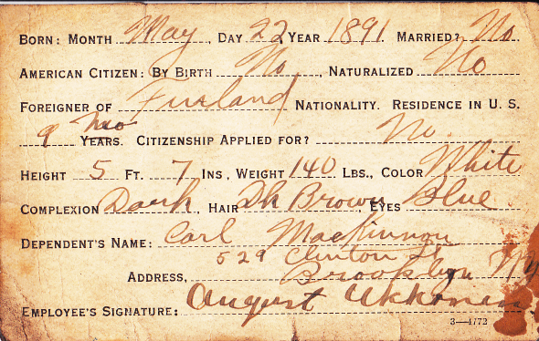 ![]() Tove Blomqvistin äidin isä August Ukkonen (synt. 1891) |